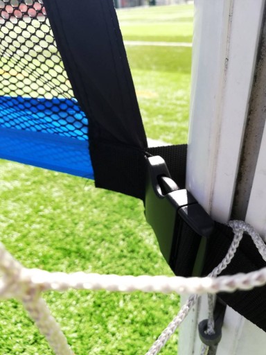 - Montowana jest do bramki za pomocą gumowych obejm z klipsami plastikowych klamr.