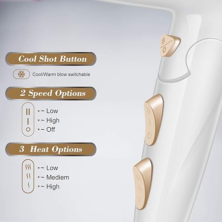 Dzięki trzem ustawieniom temperatury i dwóm prędkościom możesz znaleźć taką wydajność nawiewu, jaką preferujesz dla swojego rodzaju włosów.