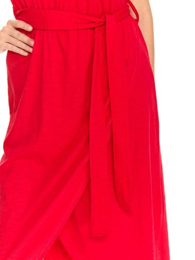 Kopertowa, długa sukienka damska o luźnym kroju z dekoltem w łódkę. Casualowa, gładka sukienka z paskiem wykonana ze 100% bawełny będzie doskonałym wyborem na letnie dni i wieczory. Sukienka dostępna w kolorze różowym.