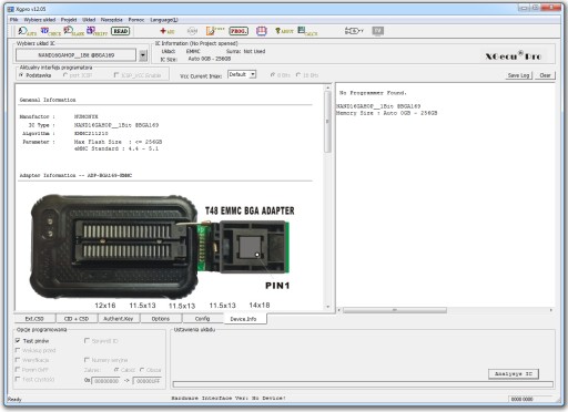 Oznaczenie XGecu: EMMC_BGA153/169_V2.0