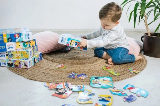 To idealny produkt do rozpoczęcia przygody z układaniem puzzli. Zabawa puzzlami wspiera zdolności manualne dziecka, poszerza wiedzę o otaczającym go świecie, przynosząc przy tym wiele radości. Żywe kolory i ciekawe grafiki zachęcają maluchy do zabawy. W ofercie dostępne są produkty oparte o ciekawe dla malucha tematy.