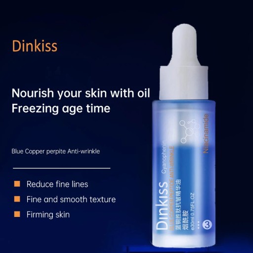 Niebieski peptyd miedziany olejek przeciwzmarszczkowy w surowicy Anti-Aging blaknąć drobne linie do oczu, ujędrniając skórę twarzy, nawilżający nawilżający środek do naprawy twarzy 30ml