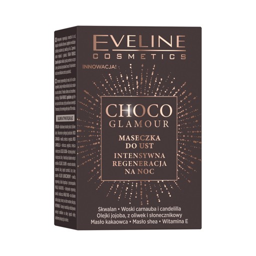 Silnie odżywcza maseczka zamieni spierzchnięte wargi w wyjątkowo aksamitne usta! Bogactwo składników aktywnych działa pielęgnująco na bardzo delikatny naskórek. Wegańska formuła ze skwalanem i masłem shea regeneruje podrażnienia, wygładza i głęboko nawilża. Wosk carnauba i wosk candelilla zmiękczają skórę oraz doskonale ją natłuszczają. Olejek jojoba, olejek z oliwek i olejek słonecznikowy widocznie ujędrniają, działają łagodząco, kojąco i przeciwzapalnie. Masło kakaowca dba o dogłębne nawodnienie i intensywną regenerację. Witamina E działa antyoksydacyjnie i odżywczo. Tak doskonałą mieszankę składników o czekoladowym zapachu używaj na noc, aby rankiem cieszyć się gładkością ust.