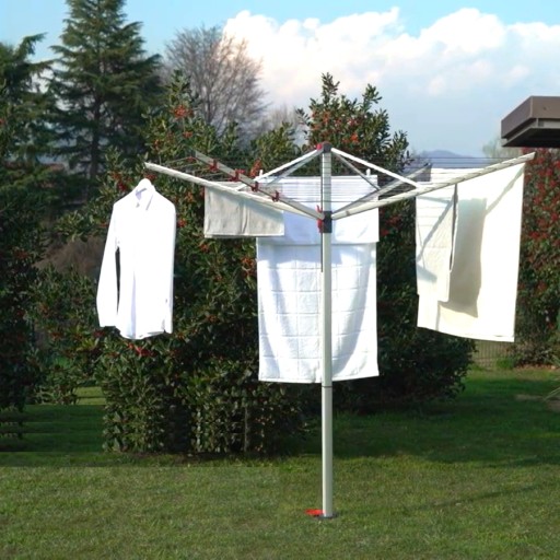 Suszarka ogrodowa Vileda jest lekka a dzięki 60 m linek pomieści nawet do pięciu pełnych prań.Wysokość suszarki: 163 - 180 cmPrzekątna po rozłożeniu suszarki: 291 cm (długość linki od jednego najdłuższego ramiona do drugiego 206 cm)