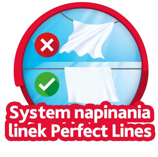Opatentowany system Perfect Lines, umożliwiający lekkie i wygodne rozkładanie a także regulację wysokości, co ułatwia wieszanie prania.