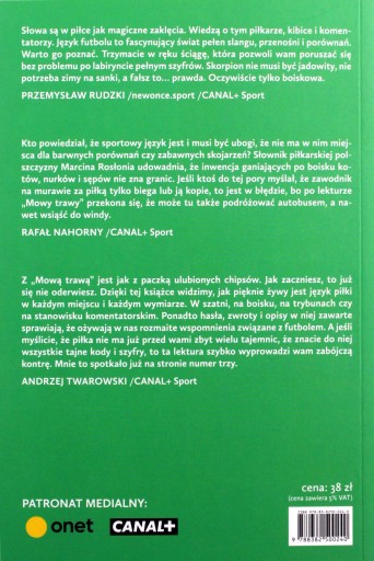 "Mowa trawa 2:0" to drugie, rozszerzone wydanie słownika piłkarskiej polszczyzny. Przed wami niezwykła wyprawa do wnętrza szatni. Poznajcie język, którym piłkarze posługują się na co dzień, na każdym treningu, podczas każdego meczu. Dowiecie się także, jakie zasady panują w szatni, kim jest Pan Piłkarz i jakie pozycje w drużynowej hierarchii zajmują dżemik i fusy. Marcin Rosłoń, były piłkarz Legii Warszawa, obecnie komentator CANAL+ Sport, otworzy przed wami drzwi do piłkarskiego świata. Tajemniczego, niedostępnego, owianego legendami miejsca, w którym panują specyficzne reguły, a obok siebie siedzą sęp, tarzan, ręcznik, nurek, kot, profesor i prostak. To może być dla was powrót do dzieciństwa, szalonych podwórkowych zwycięstw, marzeń o wielkiej karierze, wyprawa w nieznane lub możliwość odkrycia futbolu na nowo. Jedno jest pewne - nudy nie będzie. Miłej wyprawy! Strzelania śmiechem!