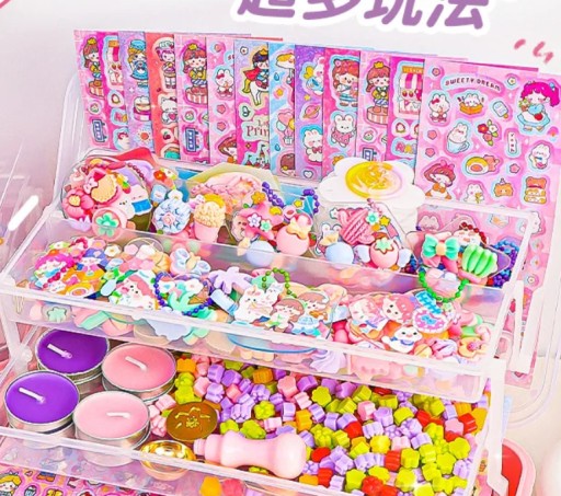 - Przechowywanie: Uroczy, trójwarstwowy kuferek z motywami, idealny do organizacji i przechowywania zestawu.
