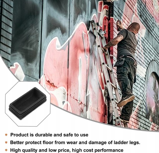 POKRYWKI NA NóKI Odporna na zuycie mata na nogi drabiny zwiksza dotyk podogi aby drabina bya bardziej stabilna Twoje bezpieczeństwo. Rozszerzone ochraniacze na nogi drabiny pokrowiec jest atwy do zamocowania i atwy w uyciu zapewniajc dobre wraenia z uytkowania. POKRYWA NA DRABIN gumowy materia niezawodny i antypolizgowy odporny na zuycie moe by uywany przez dugi czas. Akcesoria do pokrywy drabiny utrzymuj drabin bardziej stabiln i spraw aby ludzie byli bezpieczniejsi na drabinie niezawodni i mocni. Nakrtki na nogi praktyczne akcesorium kompatybilne z drabin moe bezporednio zastpi zuyte lub uszkodzone osony na nogi drabiny.