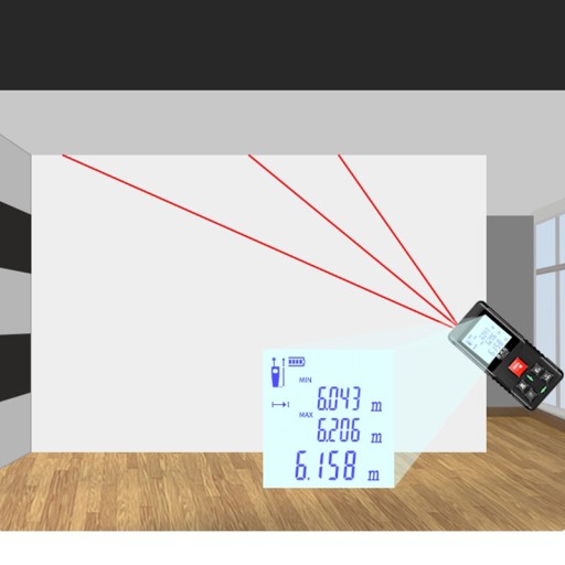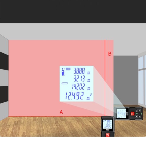 Krótko naciśnij trzy razy klawisz FUNC, aby przejść do bezpośredniego trybu pomiaru pitagorejskiego, następnie naciśnij klawisz MEAS, aby zmierzyć długość A/B na obrazie i automatycznie obliczyć wysokość pionową pomiędzy A/B.