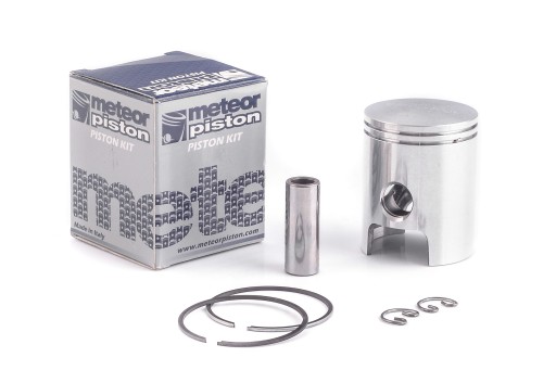 Tłoki Meteor, przeznaczone do silników dwusuwowych, wykonywane są z odlewu stopu aluminium z 18% zawartością krzemu. Dzięki domieszce krzemu znacznie zniwelowana jest rozszerzalność cieplna tłoka, a co za tym idzie, może pracować on w bardzo ciężkich warunkach. Daje to gwarancję długiego i bezproblemowego działania. Dodatkowo poddawane są procesowi wygrzewania oraz napylania warstwą molibdenu. Pierścienie tłokowe dostarczane w komplecie pochodzą od japońskiego producenta, lub włoskiej firmy Caber.
