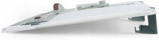 - Jest to kompletna stacja robocza do kreślenia formatu A3 z równoległym ruchem, który wsuwa się w rowek i blokuje na każdym końcu za pomocą przycisków palców.