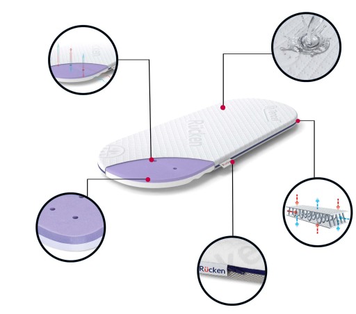 ✅ Fioletowa pianka antybakteryjna VitaRest® HR 35/32 z certyfikatem "Ultra Fresh" na długo pozostaje higieniczna i bezzapachowa. Na powierzchni i wewnątrz materaca nie rozwijają się bakterie, grzyby i pleśnie.