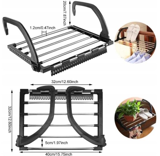 - -Może być przymocowany do poręczy balkonu. Możesz również przymocować go do otwartych drzwi lub ściany prysznica.