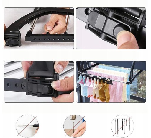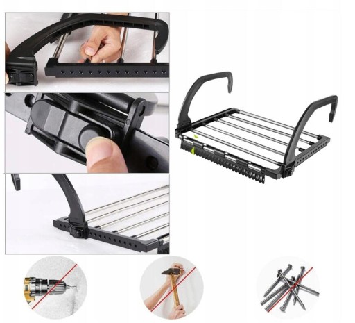 - -Możesz również złożyć wiszącą suszarkę na płasko i schować ją w dwóch łatwych krokach.
