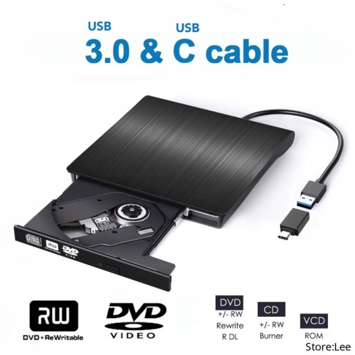 External DVD Drive, USB 3.0 Portable CD/DVD /-RW Drive/DVD Player For Laptop CD ROM Burner Compatible With Laptop Desktop PC Windows Linux OS Apple Mac Black