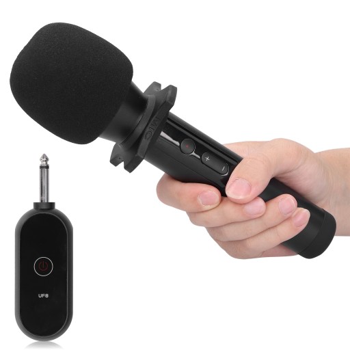 3. Mikrofon wykorzystuje pasmo UHF, odległość robocza wynosi 30 m / 98,4 stopy, jest dostarczany z kompletnym wyposażeniem.