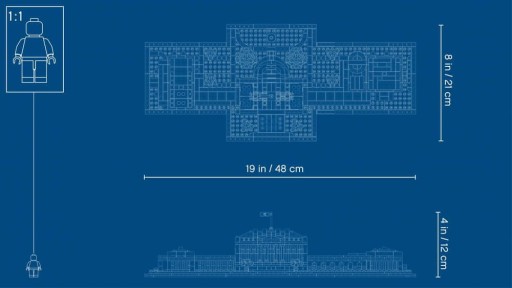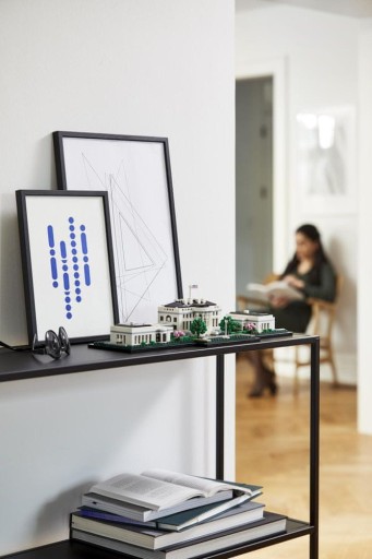 - Model łatwo dzieli się na trzy części, umożliwiając przyjrzenie się z bliska detalom architektonicznym. Uzupełnieniem tego kolekcjonerskiego modelu jest klocek LEGO® z napisem „The White House”, który zainspiruje oglądających do dyskusji.