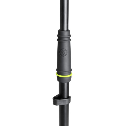 Precyzyjna regulacja pozycji i nachylenia wysięgnika o długości 79 cm za pomocą dwóch śrubek. Rączka do wygodnej i trwałej regulacji wysokości statywu oraz zaślepki śrub zostały wykonane z niezwykle wytrzymałego ABS z antypoślizgowym, delikatnym w do tyku obiciem z termoplastiku, zapewniającym komfortowe użytkowanie. Specjalnie zaprojektowana przeciwnakrętka umożliwia dodatkowo błyskawiczny i solidny montaż uchwytu mikrofonowego bez potrzeby użycia narzędzi.