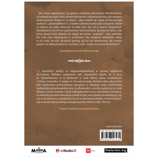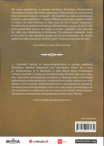 „ Nie ulega wątpliwości, że sprawa zabójstwa Bronisławy Mendoniówny od samego początku była celowo gmatwana i tak prowadzona, aby sprawcy mogli pozostać bezkarni, co więcej – aby znaleźli się z dala od ówczesnego wymiaru „sprawiedliwości”, a nawet całkowicie poza jego zasięgiem. Miało to miejsce nie tylko wówczas, w roku 1945, ale też w latach następnych. Dwadzieścia lat później podstawowa dokumentacja sprawy, do której nikt przez ponad dwie dekady nie sięgał, po prostu „zaginęła”, choć powinna być cały czas składowana w archiwum. Nie wiadomo dokładnie, kiedy to się stało, bo nikt oficjalnie sprawą się już nie interesował. Ale istnieje pojęcie nie tylko prawnicze: cui bono, czyli – komu to przyniosło korzyść?”