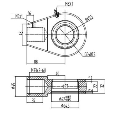 Проушина привода, монтаж привода fi40