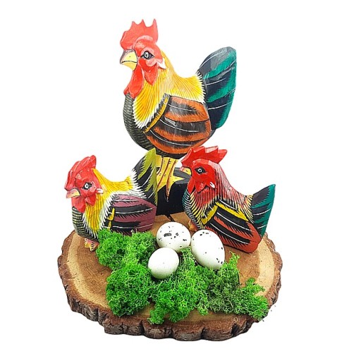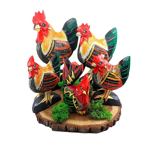 Figurki wykonane są z naturalnych materiałów (egzotyczne drewno) , każda figurka malowana jest ręcznie , dlatego figurki delikatnie różnią się od siebie.