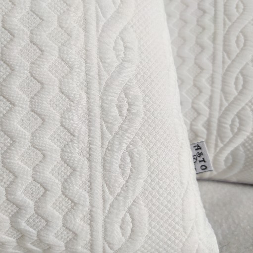 - Przód z tkaniny ze wzorem wytłaczanych warkoczy, w kolorze jasno śmietankowym.