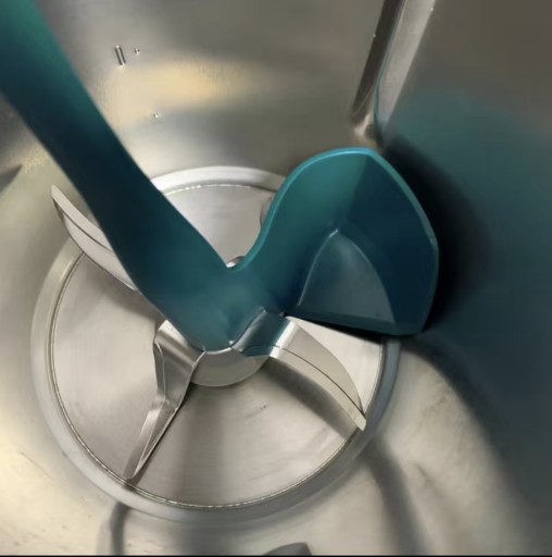 - Szpatułka wsparta jest na osi mieszadła dzięki czemu można ją łatwo obracać razem z nożem.