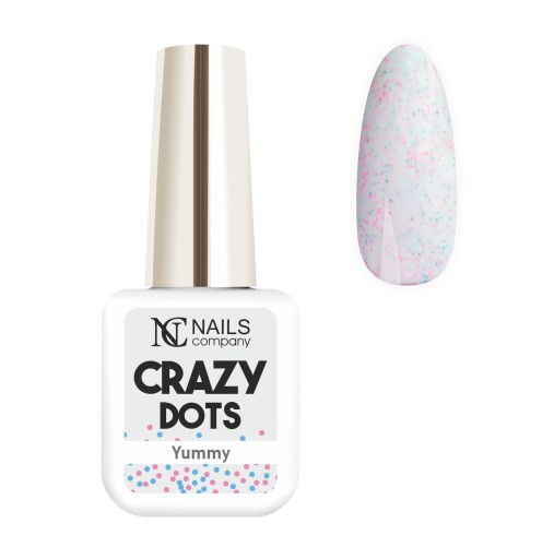 Yummy to biały lakier hybrydowy z kolekcji Crazy Dots. Przepięknie prezentuje się zarówno w błysku jak i w macie.