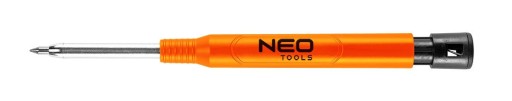 Ołówek, rysik automatyczny z temperówką plus 12 wkładów 13-816 marki NEO to ołówek warsztatowy, stolarsko-murarski ze zintegrowaną temperówką, oferowany w zestawie z 12 grafitowymi wkładami w trzech kolorach: czarnym, czerwonym oraz żółtym. Produkt został wykonany z trwałego tworzywa ABS oraz stali nierdzewnej. Charakteryzuje się długością 160 mm oraz wymiarami wkładów 125 x 2,8 mm. Jest łatwy w obsłudze i poręczny. Przeznaczony do pisania po różnych powierzchniach, m.in. po drewnie, materiałach drewnopodobnych, papierze, po metalu, kamieniu oraz szkle. Cechuje go wszechstronność oraz zaczep, jak te w długopisie, do łatwego przechowywania w kieszeni. Ołówek marki NEO oferowany jest do wielu różnorodnych zadań.