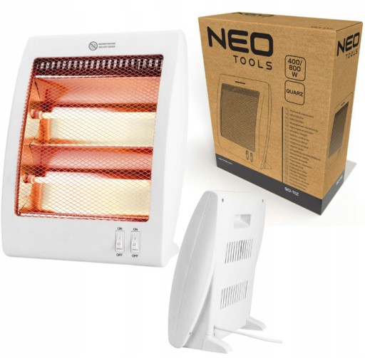 Kwarcowy promiennik podczerwieni 400/800 W 90-112 marki NEO wyposażony w element grzejny – kwarcową grzałkę gwarantuje cichą pracę, bez ogrzewania powietrza. Posiada dwie lampy kwarcowe (każda o mocy 400 W) oraz przełącznik Tip-off. Obsługuje dwa programy z mocą 400 oraz 800 W. Pracuje z napięciem 220-240 V, 50-60 Hz. Promiennik posiada szerokokątny reflektor ciepła oraz praktyczny uchwyt, dzięki któremu jest łatwy w przemieszczaniu. Długość kabla 1,2 m umożliwia swobodne podłączenie do energii sieciowej w każdym wnętrzu. System przerywający pracę w razie przewrócenia wpływa na bezpieczeństwo użytkowania urządzenia. Ten ekonomiczny promiennik daje efekty od razu po włączeniu. Oszczędza energię, zużywając jej mniej niż standardowa farelka. Nie wznieca ruchu powietrza, dzięki czemu jest odpowiedni dla alergików. Gwarantuje bezpieczeństwo za sprawą wbudowanej ochrony przed przegrzaniem, zabezpieczenia przed przeciążeniem, zabezpieczenia przeciwzwarciowego oraz zastosowania ognioodpornego materiału. Kwarcowy promiennik podczerwieni marki NEO polecany jest do dogrzewania mieszkań, biur, warsztatów czy domków letniskowych.