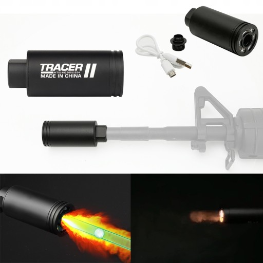 High quality material:Aluminium alloy shell with built-in USB charger,more durable and water-proof.It is the best friend to upgrade your silencer tracer and make airsoft bbs glow in dark. Increase Simulated Spitfire Mode:Switch between flash and spitfire mode. Supports sustain trace function up to 35 PRS (2100 RPM) Running fire. This airsoft gun tracer supports green luminous bbs or water bombs. Suitable for 10mm CCW pistols and 14mm CW automatic rifles(M14 CCW Thread to M11 CW Thread) Smart Energy Saving: Automatically Switch ON / OFF : It would turn off automatically after leaving it idle for 40 minutes.Led power indicator / battery power indicator.Built in lithium battery for USB charging cable .it can be use up to 4 hours.Fully charged battery would Last over to 2000 rounds. Not Working? Pls Week Up Battery:Please plug in the charging cable to charge,then press the switch button and hold it until the switch button indicator light flashes green, you can unplug the charging cable and release the switch button. You can reinsert the charging cable to charge, Then the battery can enter the normal working state for work and use.(If the indicator light dose not flash,Please repeat the above steps several times to wake up the battery.)