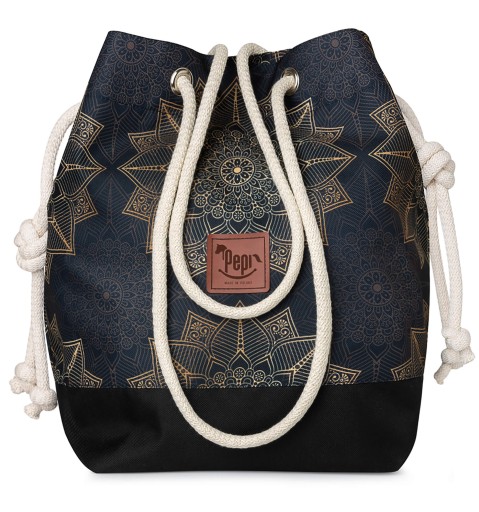 Lekka torba miejska pomieści dokumenty A4. Torebka wykonana jest z mocnej, wysokiej jakości tkaniny. Materiał jest wodoodporny i nie mechaci się. Wnętrze uszyte jest również z wodoodpornej podszewki. Worek w środku posiada dodatkową kieszonkę zapinaną na zamek. Całość zapinana na magnes. Torebka posiada grube bawełniane sznurki z możliwością regulacji.