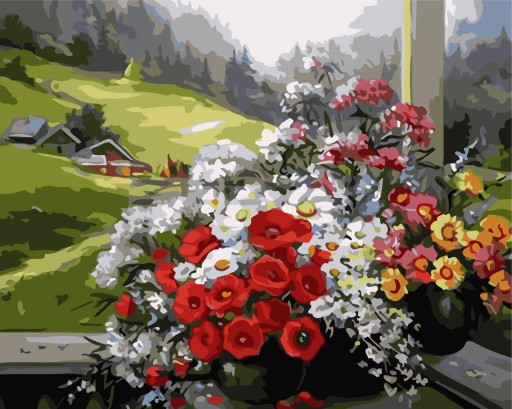 ✅ Obraz Malowanie Po Numerach - Kwiaty na Werandzie 40x50 PIAST