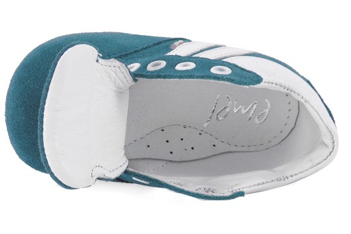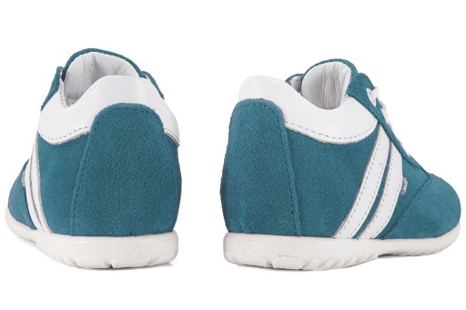 - materiał wierzchni: skóra naturalna zamszowa (turkusowy) / skóra naturalna licowa (biały)