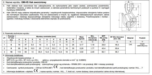 HAK SWORZNIOWY ŁAŃCUCHOWY 5/16 " DO 1770 kg ,