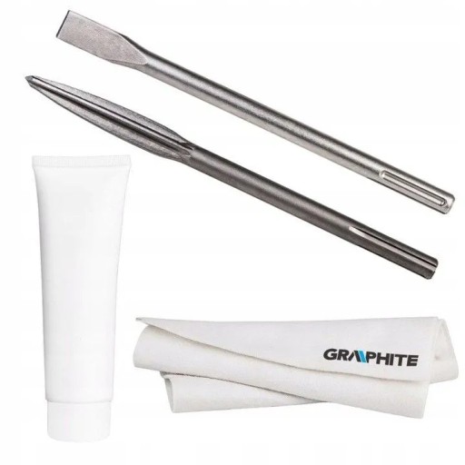 - W zestawie: dłuto płaskie SDS-max, dłuto samoostrzące SDS-max, smar do wrzecion, ścierka