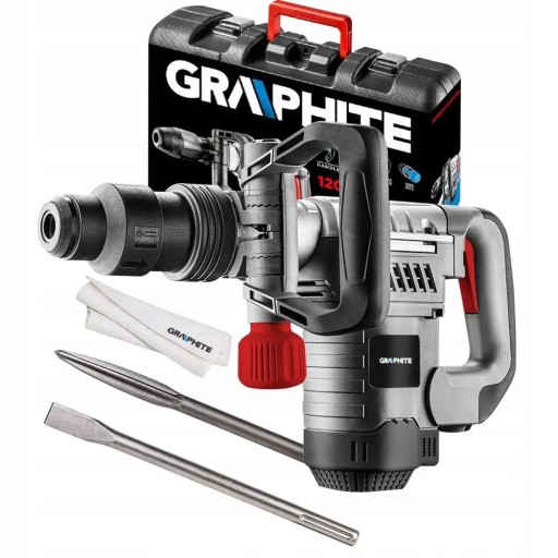 Młot kujący SDS Max 1050W, walizka 58G875, GRAPHITE Młot kujący SDS Max 1050W, walizka 58G875, GRAPHITE, profesjonalne urządzenie, przeznaczona do intensywnych prac instalatorskich i rozbiórkowych. Młot cechuje bezpieczeństwo i wygoda pracy za sprawą pokrytej materiałem antypoślizgowym rękojeści głównej oraz rękojeści dodatkowej typu „D”, umożliwiającej regulację położenia pod dowolnym kątem. 12-stopniowy system indeksacji dłuta, umożliwia dokładne dopasowanie pozycji dłuta do aktualnie wykonywanej pracy. Obudowa przekładni wykonana została ze stopu aluminium, dzięki czemu jest odporna na uszkodzenia i skutecznie odprowadza ciepło.