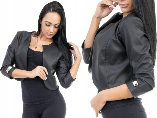 BARDZO EFEKTOWNY ŻAKIET USZYTY Z EKO-SKÓRY, DEKOLT OKRĄGŁY .