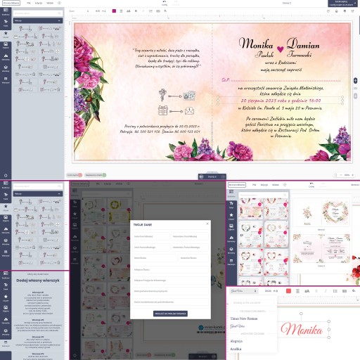 Sam zaprojektuj własne zaproszenia, dodaj dowolny tekst, listę gości, zdjęcie, dodatkową grafikę / rebusy / wierszyki oraz dostosuj według potrzeb kolory, czcionki, tekst oraz jego układ itp.