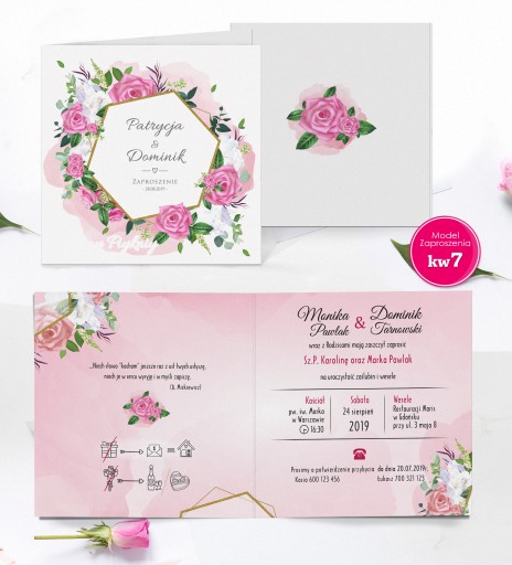 Format zaproszenia: rozłożone: 14,5x29cm / złożone: 14,5x14,5cm