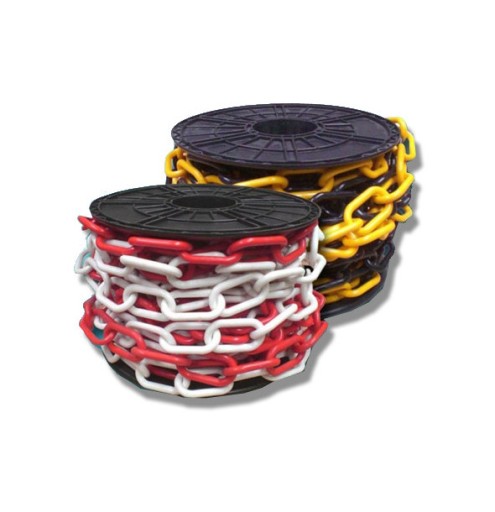 Do zaoferowania mamy łańcuch z tworzywa sztucznego BHP w kolorze biało-czerwonym z ogniwem o średnicy 6 mm.