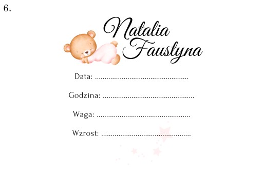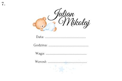 Uwaga! Przy zakupie wpisz nr wzoru oraz wszystkie dane potrzebne do personalizacji.