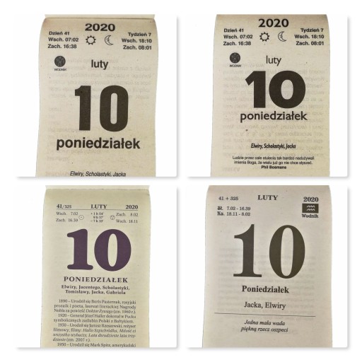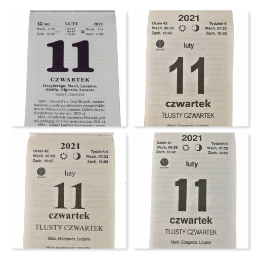 Tu kupisz oryginalną kartkę wydartą z kalendarza zdzieraka z lat 2020 - 2024. Dzień, miesiąc i rok oczywiście wybierzesz sam(a). Nie zapomnij podać daty w "uwagach do zakupu". Przykładowe kartki na zdjęciach.