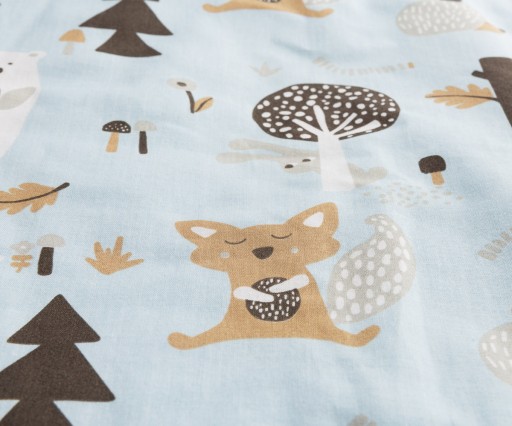 Komplet do łóżeczka to połączenie wysokiej jakości muślinu z jednej strony, z drukowaną bawełną z drugiej. Składa się z dwustronnej płaskiej poduszki oraz kołderki z wypełnieniem. Połączenie naturalnych i przewiewnych tkanin idealnie sprawdzi się w łóżeczku, gondoli czy kołysce. Wypełniony jest antyalergiczną silikonową włókniną. Komplet zapakowany jest w gustowne kartonowe opakowanie, w sam raz na prezent.