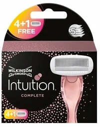 Maszynka Wilkinson Sword Intuition Complete oferuje najwyższą jakość golenia w linii Intuition. Posiada pięć ostrzy wykonanych w technologii Skin Perfect, które pozostawiają skórę niewiarygodnie gładką. Żel nawilżający aktywowany wodą zamiast paska nawilżającego, pozwala maszynce gładko przesuwać się po skórze, minimalizując ryzyko podrażnień. Żel zawiera formułę z kwasem hialuronowym, który dodatkowo nawilża skórę.