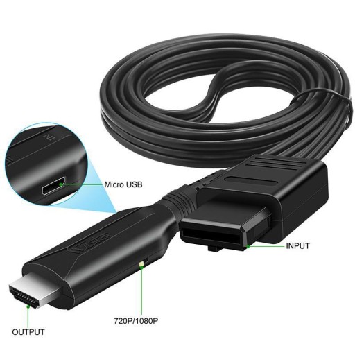 Obraz może byc skalowany do rozdzielczości 720p lub 1080p (wybór przełącznikiem na obudowie). Obraz jest konwertowany ze standardu CVBS, skalowanie obrazu nie oznacza, że obraz uzyskuje wyższą rozdzielczość i jakość niż oferowana przez ten standard ale można podłączyć konsolę do telewizora, który nie ma już analogowych wejść AV.