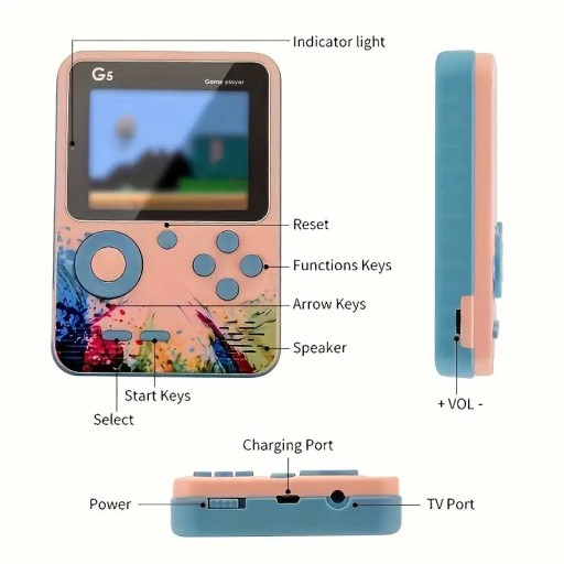 ➡️Przenośna konsola do gier, która zmieści się nawet w kieszeni. Została zaprojektowana tak, aby jak najbardziej przypomnieć konsole z dawanych czasów. Jest lekka, idealnie trzyma się w dłoni dzieci oraz dorosłych podczas grania.