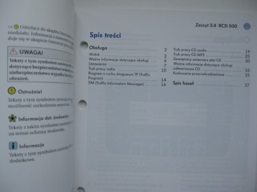 VW RCD 500 instrukcja radia VW Passat B6 Golf V PL