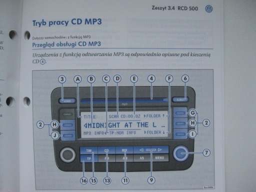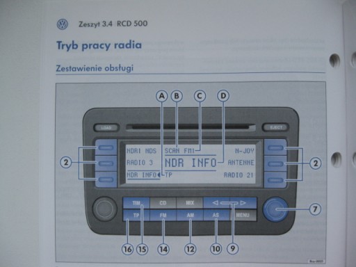 Руководство по магнитоле VW RCD 500 VW Passat B6 Golf V PL