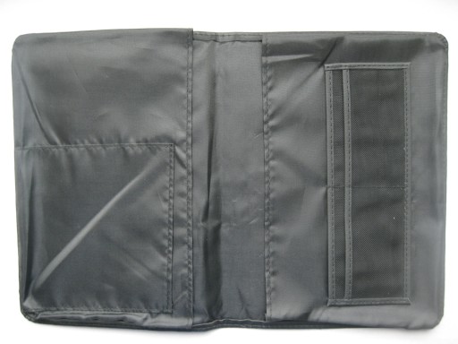 W środku materiałowe, dwie duże kieszenie na instrukcje + 4 mniejsze kieszonki z drobnej siateczki na wizytówki + jeszcze jedna dzielona
